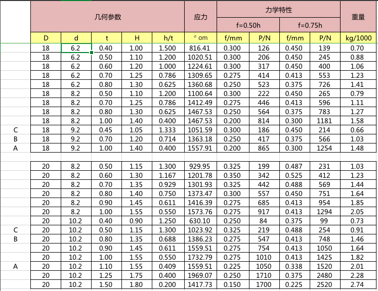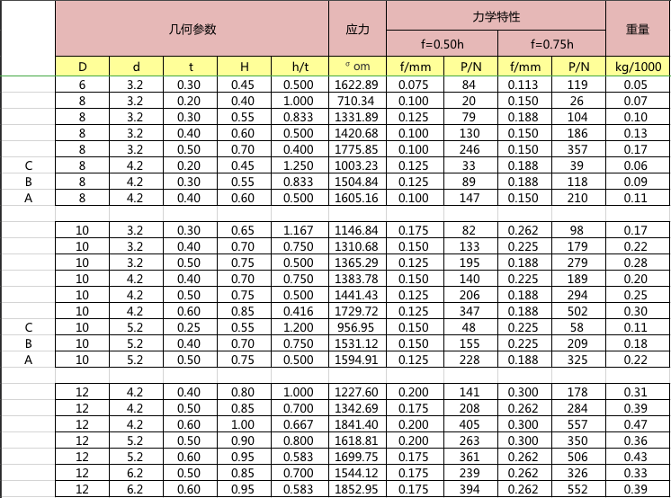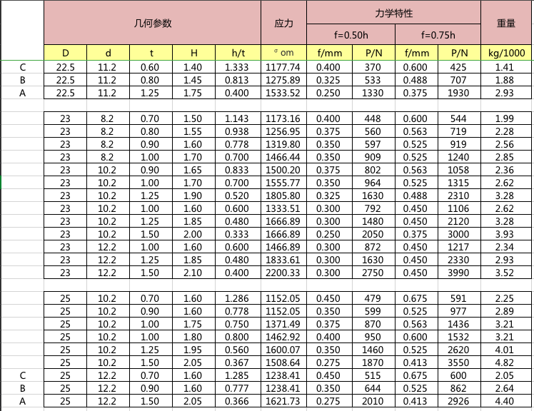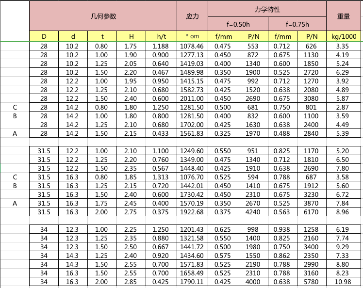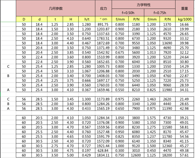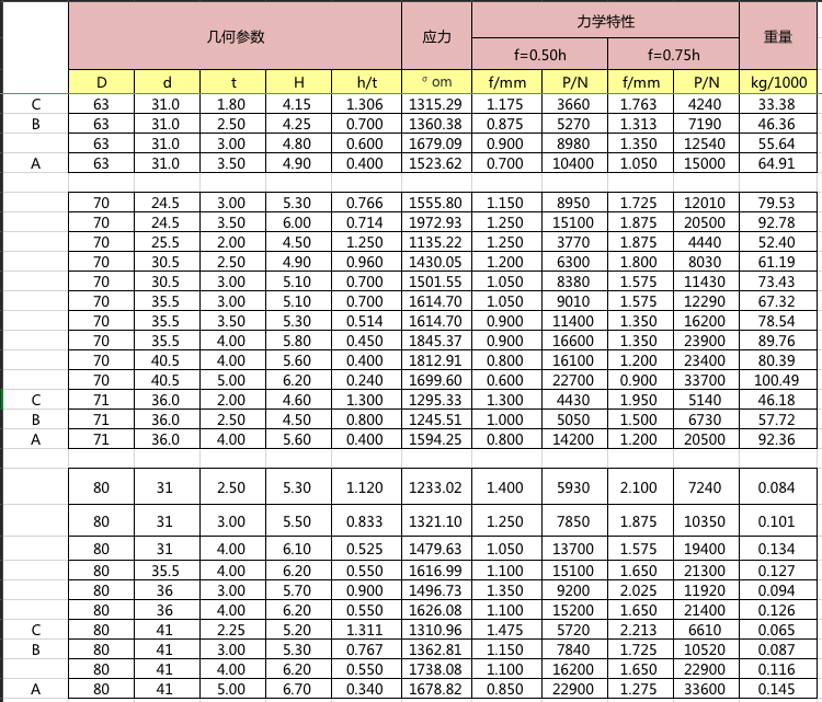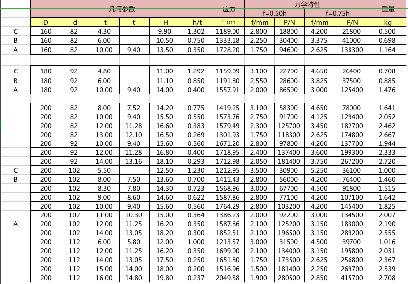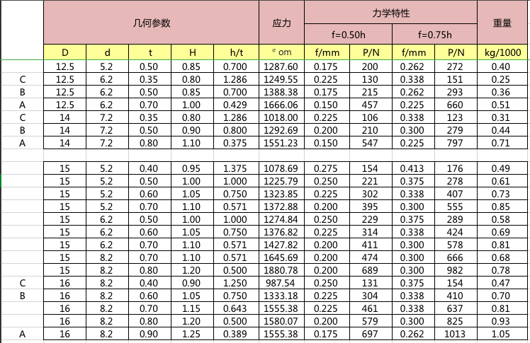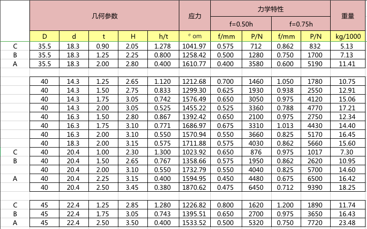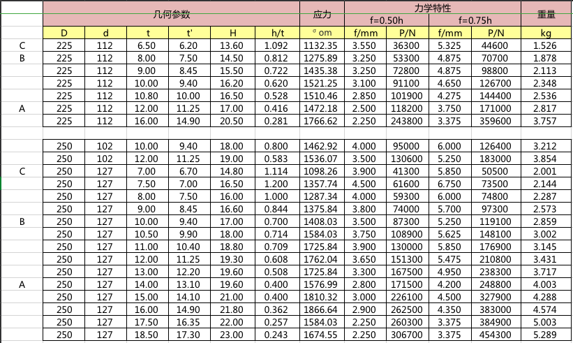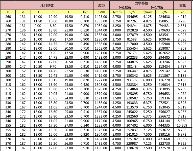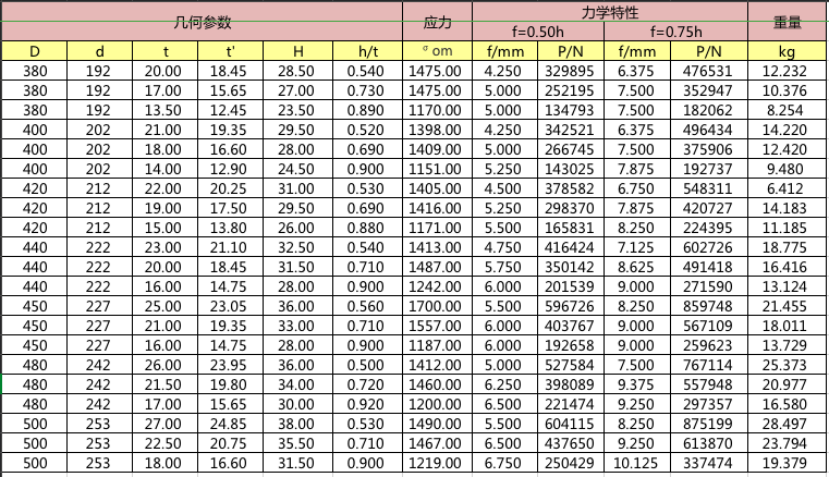 碟簧參數表